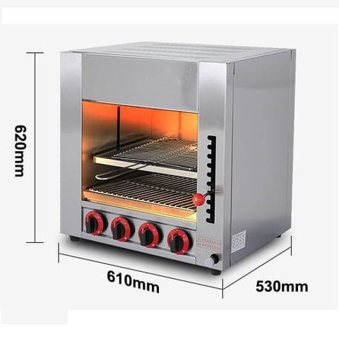 Nếu bạn là một tín đồ của những món nướng, đừng bỏ qua lò nướng Salamander 4 họng. Đây là thiết bị nướng chất lượng giúp bạn có thể chế biến đa dạng các món ăn gồm bánh, thịt, rau củ, hải sản. Nhiệt trong lò được tỏa từ trên xuống dưới giúp thức ăn chín đều, không bị cháy mà vẫn giữ được hương vị thơm ngon đặc trưng.