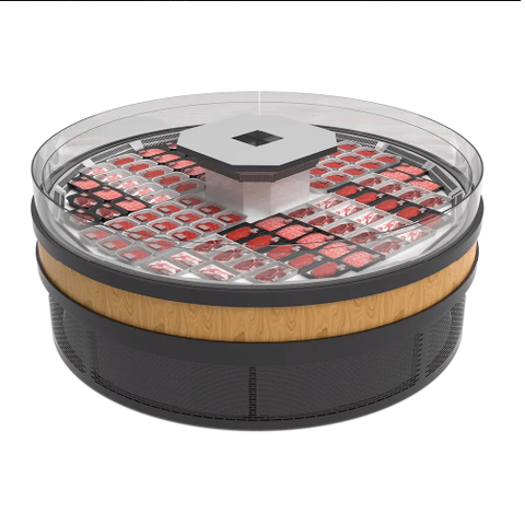Với kiểu dáng hình tròn giúp tôi tiết kiệm được tối đa diện tích sử dụng trong siêu thị hoặc cửa hàng thực phẩm. Ngoài ra với thiết kế mở nên rất dễ dàng giúp khách lựa chọn được thực phẩm mà mình mong muốn.